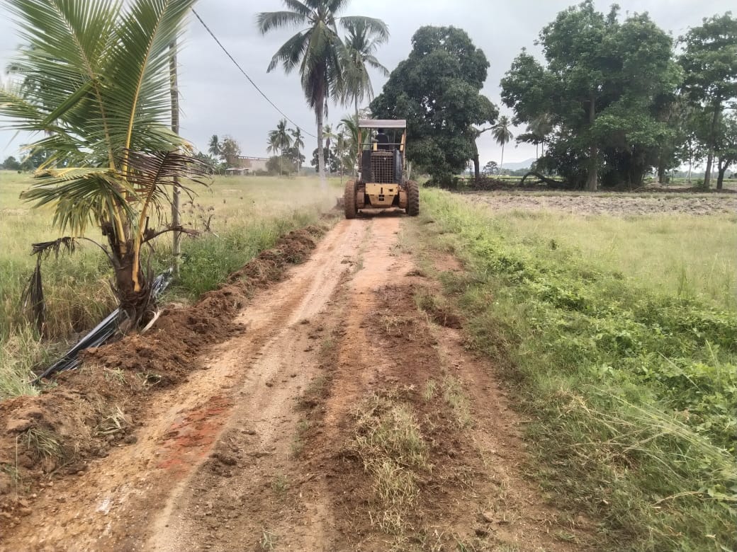 Dimana pada Senin 15 September 2025 pengerjaan program kerja desa sudah di mulai dengan pembuatan Badan jalan selebar 4 M dengan panjang 650 M menggunakan alat berat