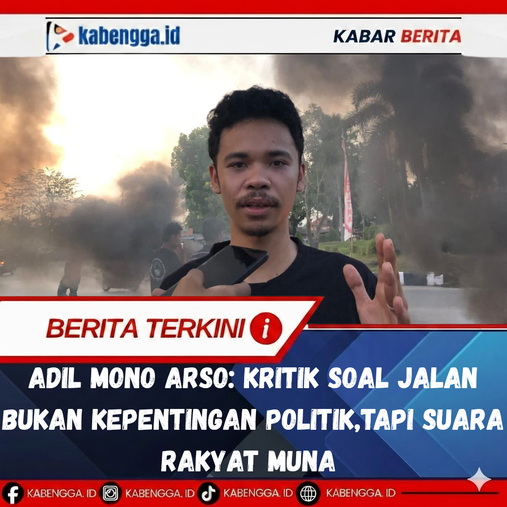 Muna, Kabengga.Id – Pernyataan Bupati Muna yang menyebut kritik terhadap kerusakan jalan sebagai bagian dari kepentingan lawan politik menuai tanggapan keras dari kalangan pemuda. Salah satunya datang dari Adil Mono Arso, yang menegaskan bahwa kritik yang disampaikan masyarakat adalah bentuk kepedulian, bukan manuver politik.