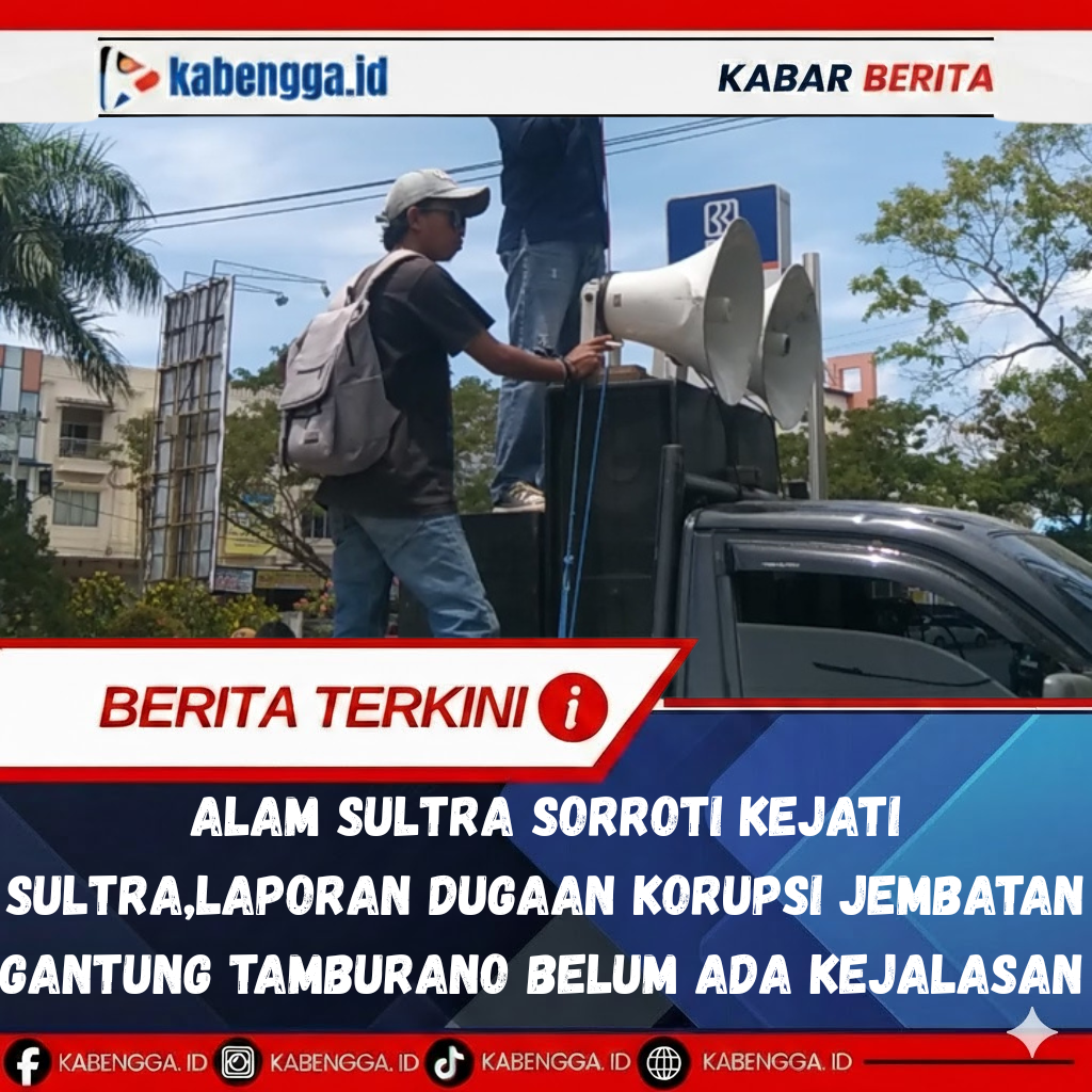 Kendari, Kabengga.Id. – Aliansi Aktivis Mahasiswa Sulawesi Tenggara (ALAM Sultra) menyoroti kinerja Kejaksaan Tinggi Sulawesi Tenggara (Kejati Sultra) atas belum adanya kejelasan penanganan laporan dugaan korupsi pembangunan Jembatan Gantung Tamburano di Kabupaten Konawe Kepulauan yang telah dimasukkan sejak bulan lalu.