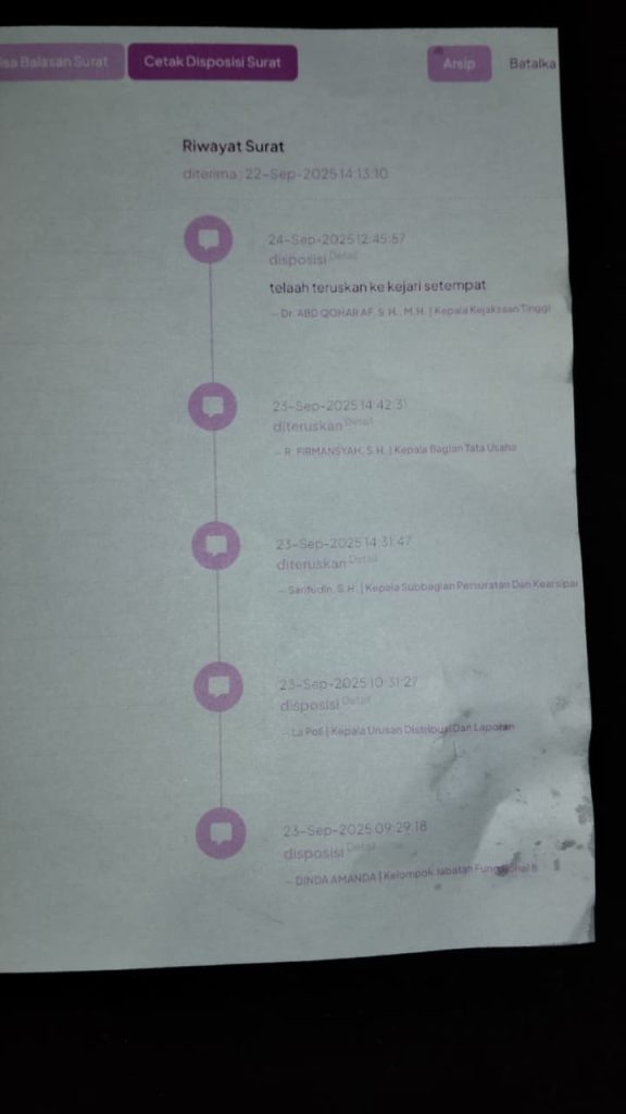 Sementara itu, Rahman selaku Kasipenkum Kejati Sultra menyampaikan bahwa pihaknya telah bekerja sesuai prosedur hukum dan terus mengawal setiap laporan masyarakat.