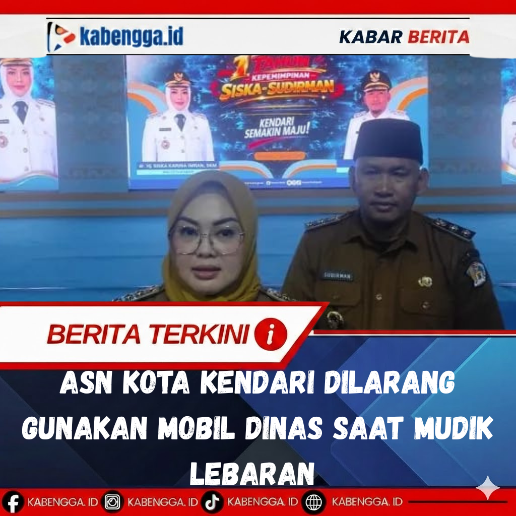 Kendari – Wali Kota Kendari Siska Karina Imran secara tegas mengeluarkan instruksi terkait larangan bagi seluruh Aparatur Sipil Negara (ASN) Pemerintah Kota (Pemkot) Kendari, Sulawesi Tenggara (Sultra), menggunakan kendaraan dinas untuk keperluan mudik Lebaran Idul Fitri 1447/2026 .