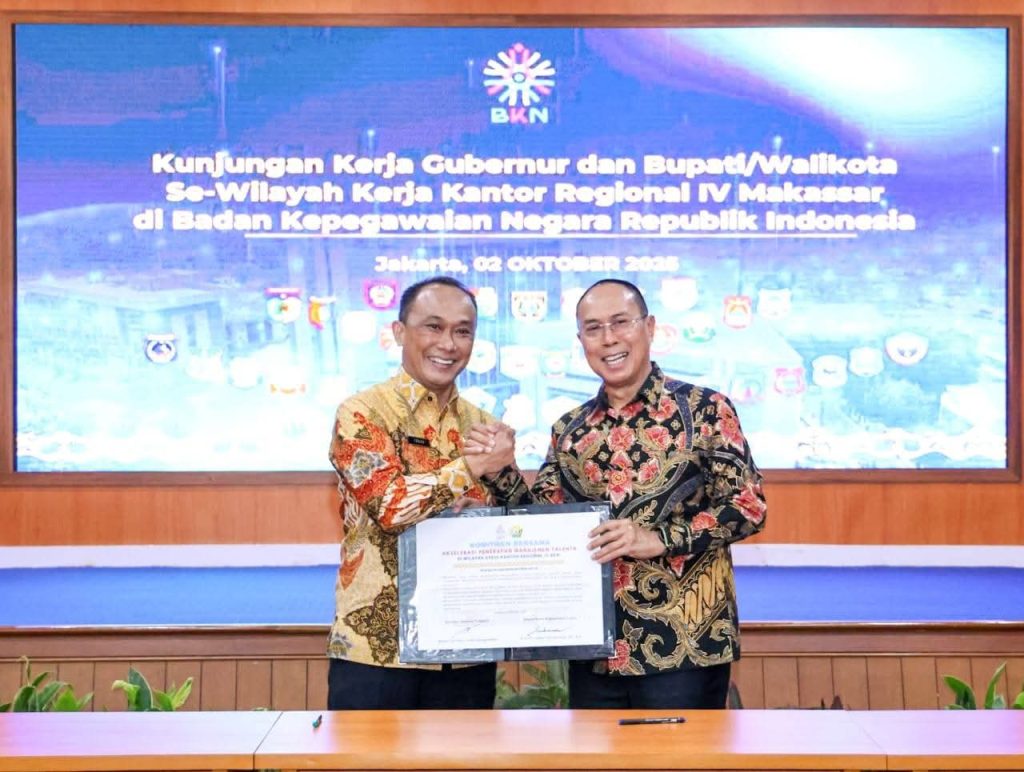Jakarta – Kabengga.id ll Gubernur Sulawesi Tenggara (Sultra), Mayjen TNI (Purn) Andi Sumangerukka, menghadiri kegiatan Komitmen Bersama Kepala Daerah tentang Pembangunan Meritokrasi Instansi yang digelar di Kantor Badan Kepegawaian Negara (BKN), Jakarta, Kamis (2/10/2025). Agenda tersebut dirangkaikan dengan Pembekalan Tim Manajemen Talenta Instansi.