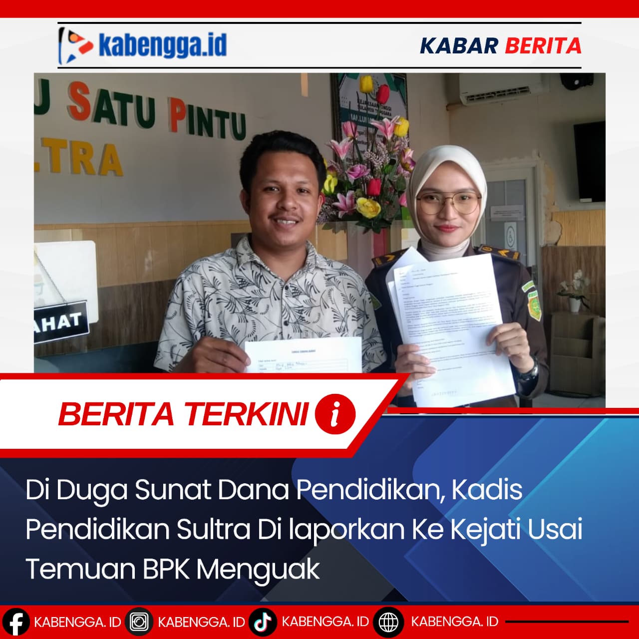 KENDARI, (26 Januari 2026) — Aroma dugaan korupsi kembali menyeruak dari sektor pendidikan Sulawesi Tenggara. Aliansi Aktivis Mahasiswa Sulawesi Tenggara (ALAM Sultra) resmi melaporkan Kepala Dinas Pendidikan Provinsi Sultra ke Kejaksaan Tinggi (Kejati) Sultra atas dugaan kekurangan volume pada sejumlah paket pekerjaan fisik Tahun Anggaran 2024.