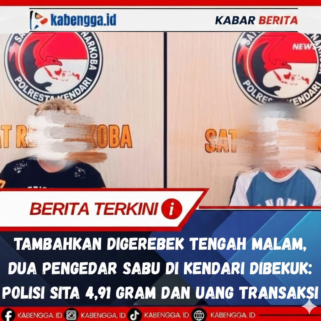KENDARI – Peredaran narkotika di Kota Kendari kembali diguncang operasi senyap aparat. Tim Opsnal Satuan Reserse Narkoba Polresta Kendari meringkus dua pria yang diduga terlibat jaringan peredaran sabu, Kamis dini hari, 26 Februari 2026, sekitar pukul 00.30 WITA.