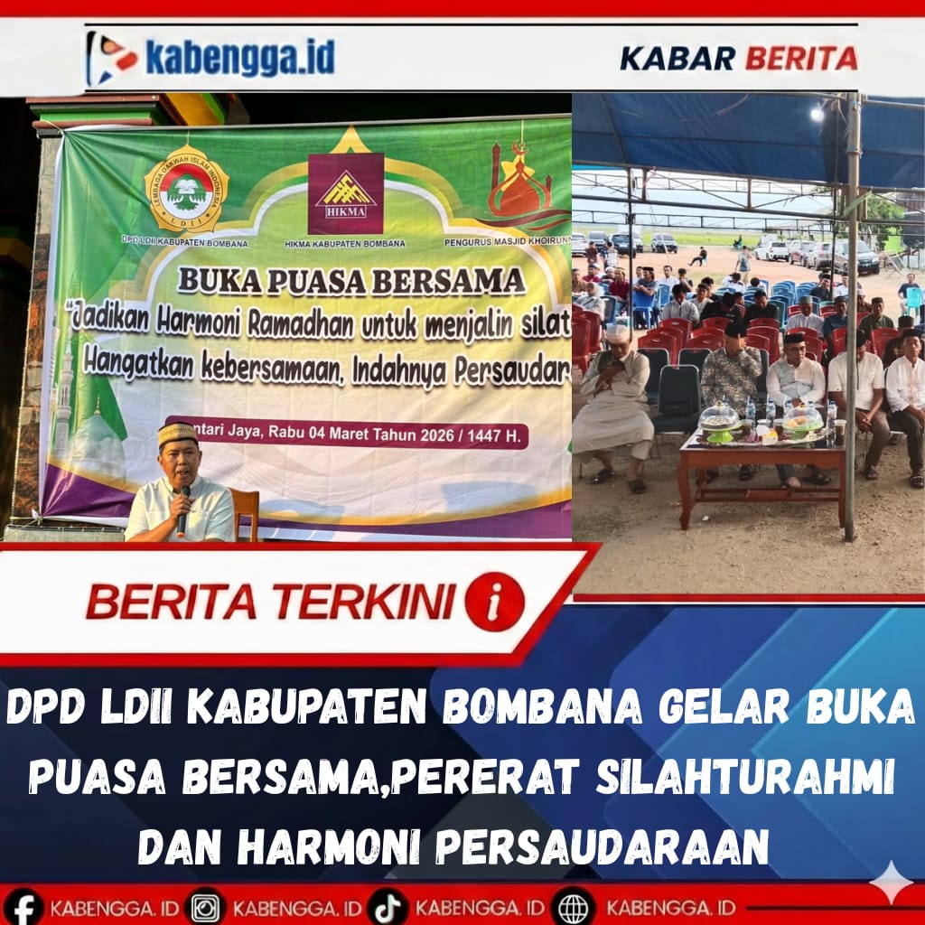 BOMBANA – KABENGGA.ID (4/3/26) || Dewan Pimpinan Daerah (DPD) Lembaga Dakwa Islam Indonesia (LDII) gelar buka puasa bersama dengan mengangkat tema “Jadikan Harmoni Ramadhan untuk Menjalin Silaturahmi, Hangatkan Kebersamaan, Indahnya Persaudaraan”.