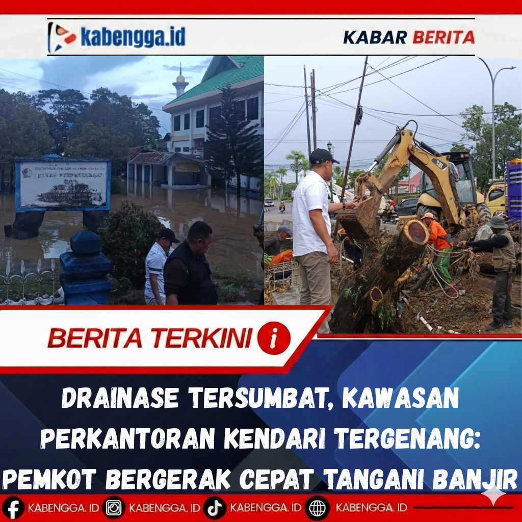 KENDARI – Pemerintah Kota Kendari bergerak cepat menangani genangan banjir yang melanda kawasan perkantoran Dinas Komunikasi dan Informatika Provinsi Sulawesi Tenggara, Jumat (10/4/2026). Respons sigap ini menjadi bukti keseriusan pemerintah dalam menjaga fungsi infrastruktur, khususnya di area pelayanan publik.