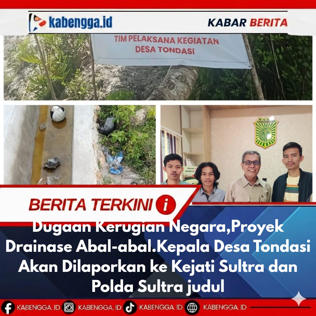 Kendari, Sulawesi Tenggara — Proyek pembangunan drainase di Desa Tondasi, Kecamatan Tiworo Utara, Kabupaten Muna Barat, Provinsi Sulawesi Tenggara, diduga bermasalah dan berpotensi menimbulkan kerugian keuangan negara. Proyek yang bersumber dari anggaran tahun 2025 tersebut kini menjadi sorotan publik dan akan dilaporkan secara resmi ke Kejaksaan Tinggi Sulawesi Tenggara (Kejati Sultra) serta Polda Sultra.