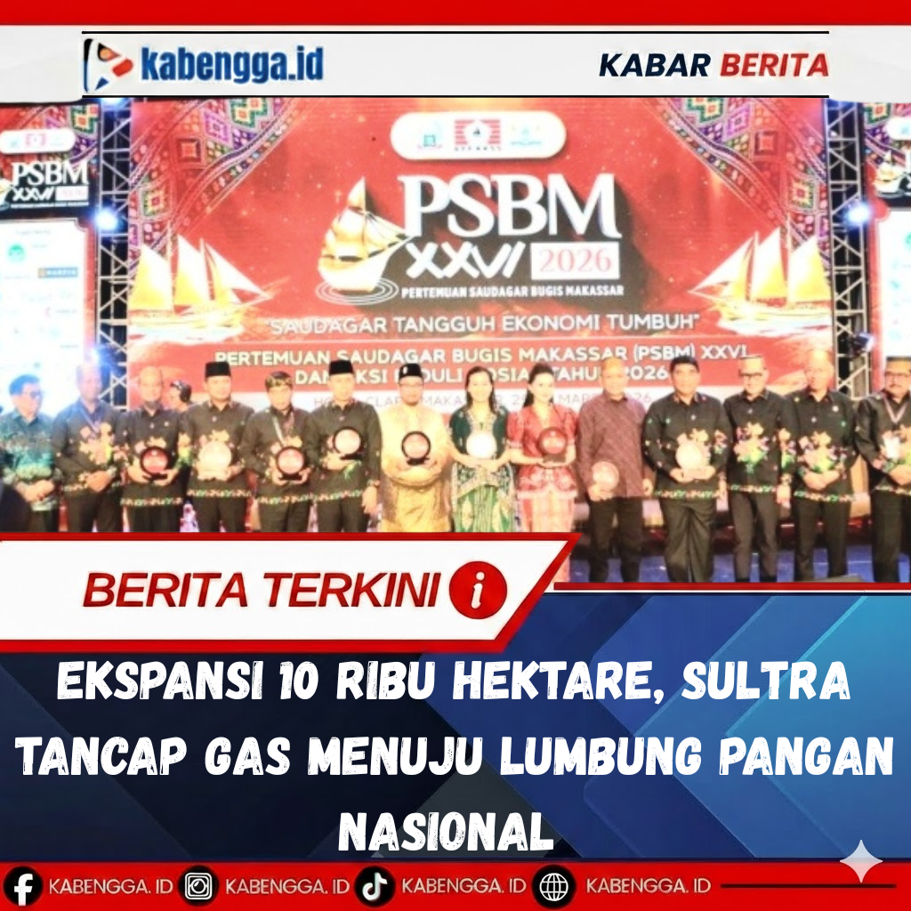 Kendari – Provinsi Sulawesi Tenggara (Sultra) kembali mencatatkan langkah progresif dalam penguatan sektor pangan. Dalam ajang Pertemuan Saudagar Bugis-Makassar XXVI yang digelar di Ballroom Hotel Claro Makassar, Kamis (26/3/2026), Sultra resmi memperoleh tambahan program Cetak Sawah Rakyat (CSR) seluas 10 ribu hektare.