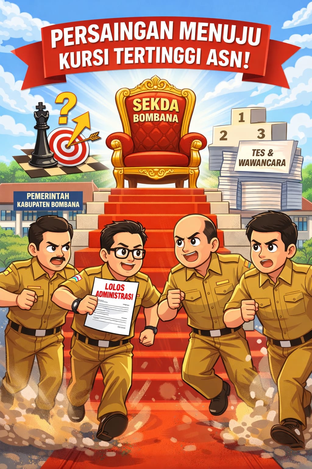 BOMBANA,KABENGGA.ID – Suhu politik birokrasi di Kabupaten Bombana kian memanas. Setelah proses pendaftaran resmi ditutup, panitia seleksi akhirnya mengumumkan empat pejabat yang dinyatakan lolos tahap administrasi dalam seleksi terbuka Jabatan Pimpinan Tinggi Pratama (JPTP) Sekretaris Daerah (Sekda).