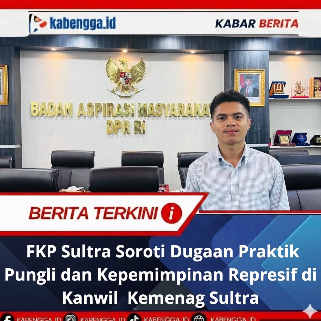 Kendari – Forum Komunikasi Pemuda Sulawesi Tenggara (FKP Sultra) menyoroti sejumlah dugaan persoalan tata kelola dan etika kepemimpinan di lingkungan Kantor Wilayah Kementerian Agama (Kanwil Kemenag) Sulawesi Tenggara. Dugaan tersebut mencakup praktik pungutan tidak resmi, penyalahgunaan kewenangan, tekanan struktural terhadap ASN, serta pola kepemimpinan yang dinilai tidak sejalan dengan prinsip birokrasi yang profesional dan humanis.