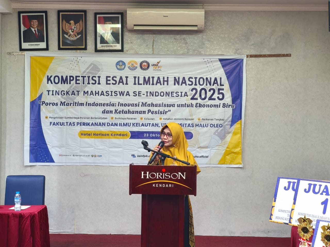 Kendari – Kabengga. id (23 Oktober 2025 ) ll Fakultas Perikanan dan Ilmu Kelautan (FPIK) Universitas Halu Oleo (UHO) kembali menyelenggarakan Kompetisi Esai Ilmiah Nasional (KEIN) VI dengan mengusung tema “Poros Maritim Indonesia: Inovasi Mahasiswa untuk Ekonomi Biru dan Ketahanan Pesisir.” Kegiatan bergengsi ini berlangsung di Hotel Horison Kendari dan diikuti oleh finalis dari 11 perguruan tinggi di seluruh Indonesia.