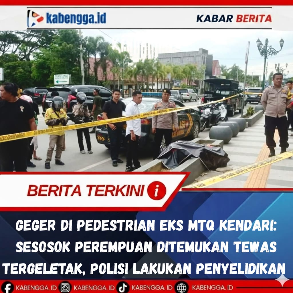 KENDARI — Suasana di kawasan pedestrian Eks MTQ, Kota Kendari, Sulawesi Tenggara (Sultra), mendadak gempar setelah warga menemukan sesosok mayat perempuan tergeletak di area tersebut pada Senin (9/3/2026) siang.
