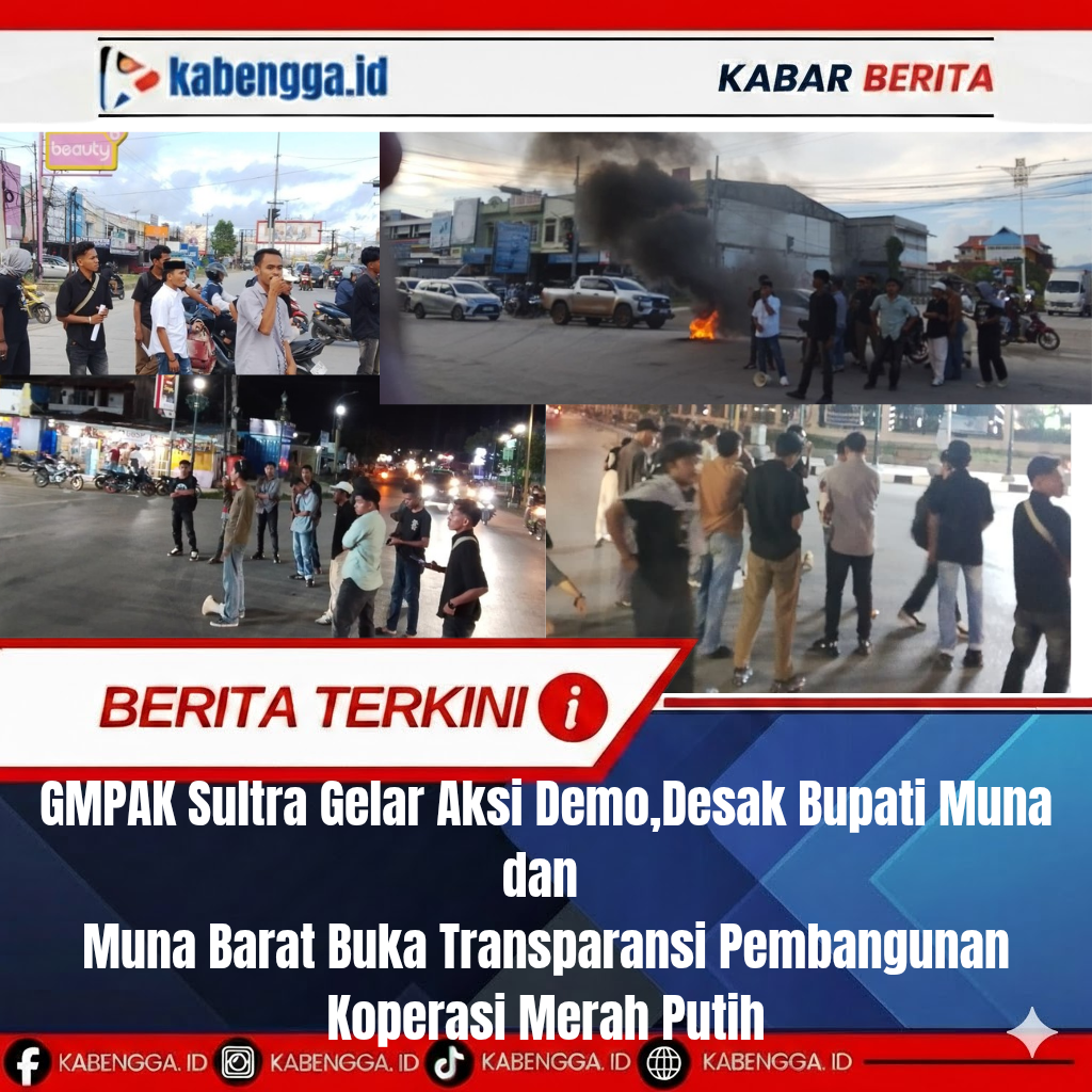 KENDARI, KABENGGA.ID. – Gerakan Mahasiswa Pemuda Anti Korupsi (GMPAK) Sulawesi Tenggara (SULTRA) menggelar aksi demonstrasi menuntut transparansi pembangunan Koperasi Desa/Kelurahan Merah Putih (KDKMP) di Kabupaten Muna dan Muna Barat. Aksi berlangsung di kawasan MTQ dan depan Gedung DPRD SULTRA, Senin (27/4/2026).