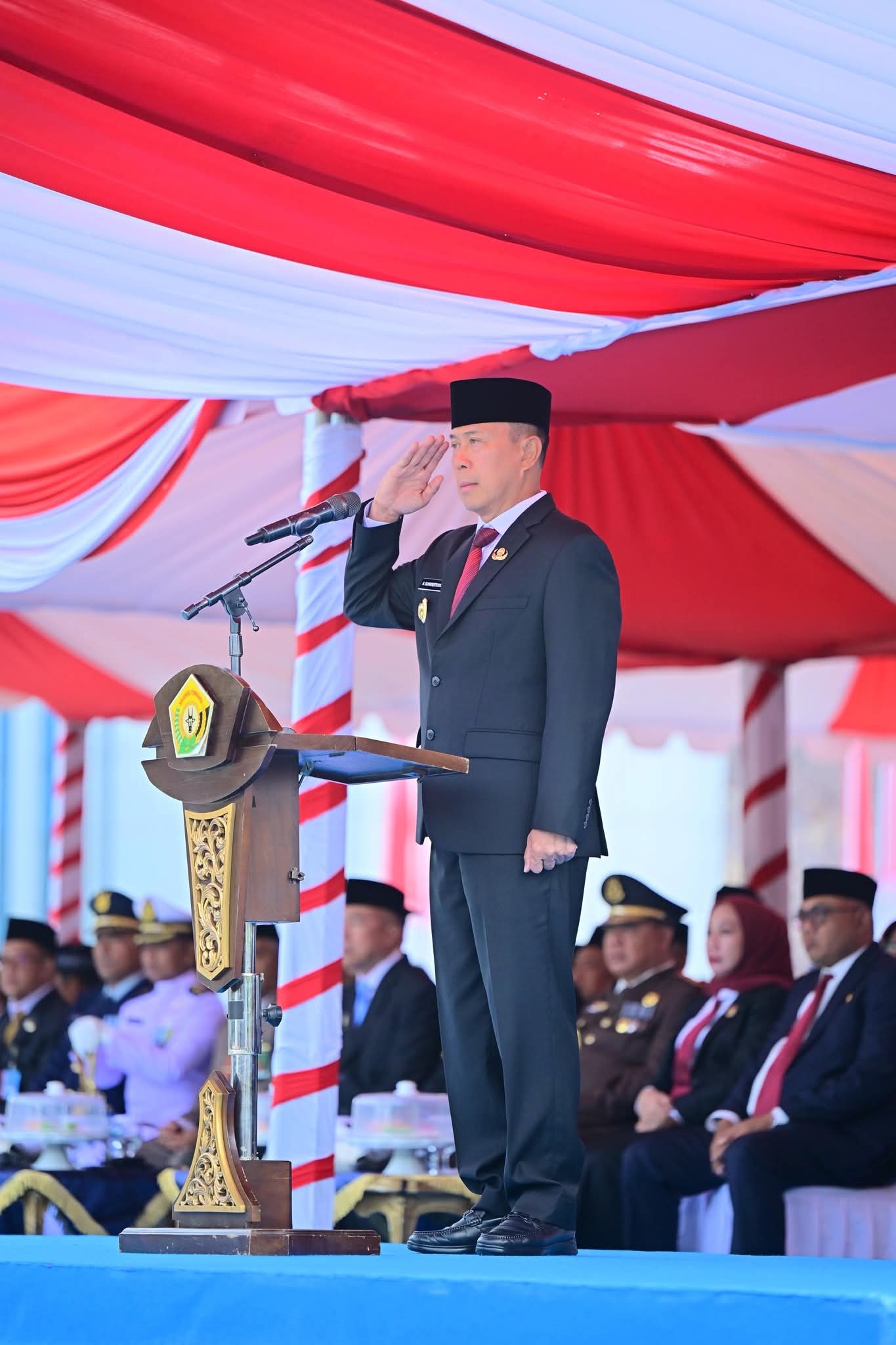 Dalam upacara tersebut, Gubernur membacakan amanat Menteri Pemuda dan Olahraga Republik Indonesia yang menggelorakan semangat juang generasi muda. Ia menekankan pentingnya keberanian untuk bermimpi besar dan tidak gentar menghadapi kegagalan. “Jangan takut bermimpi besar, jangan takut gagal. Kalian bukan pelengkap sejarah, kalian adalah penentu sejarah,” tegasnya, disambut tepuk tangan meriah peserta upacara.