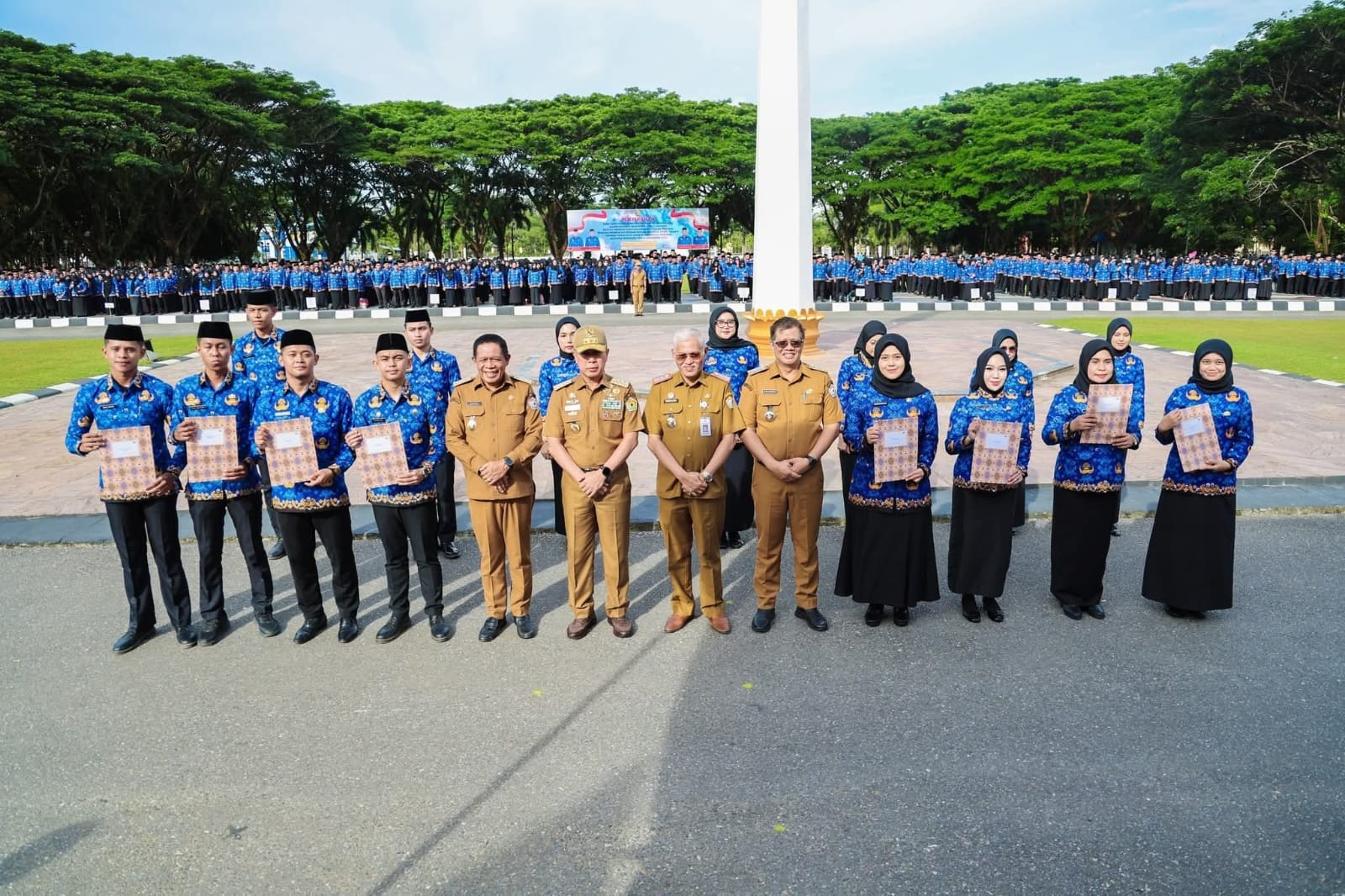 Penyerahan dilakukan secara simbolis di Lapangan Kantor Gubernur Sultra dan dihadiri oleh jajaran pejabat tinggi pratama, para kepala OPD, serta ratusan ASN penerima SK yang tampak antusias menyambut momen bersejarah tersebut.