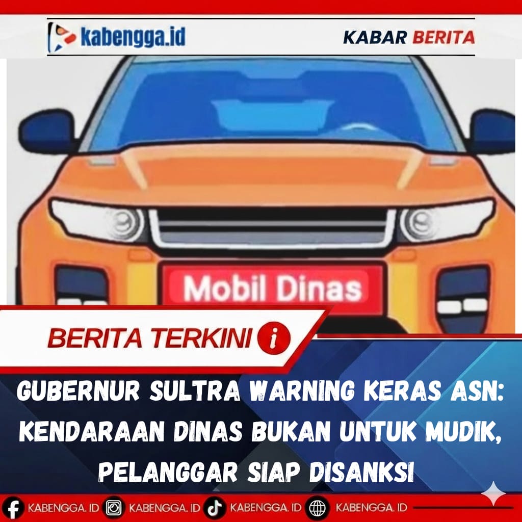 KENDARI – Pemerintah Provinsi Sulawesi Tenggara (Pemprov Sultra) mengeluarkan peringatan keras kepada seluruh Aparatur Sipil Negara (ASN) agar tidak menyalahgunakan kendaraan dinas untuk kepentingan pribadi, khususnya perjalanan mudik Lebaran.
