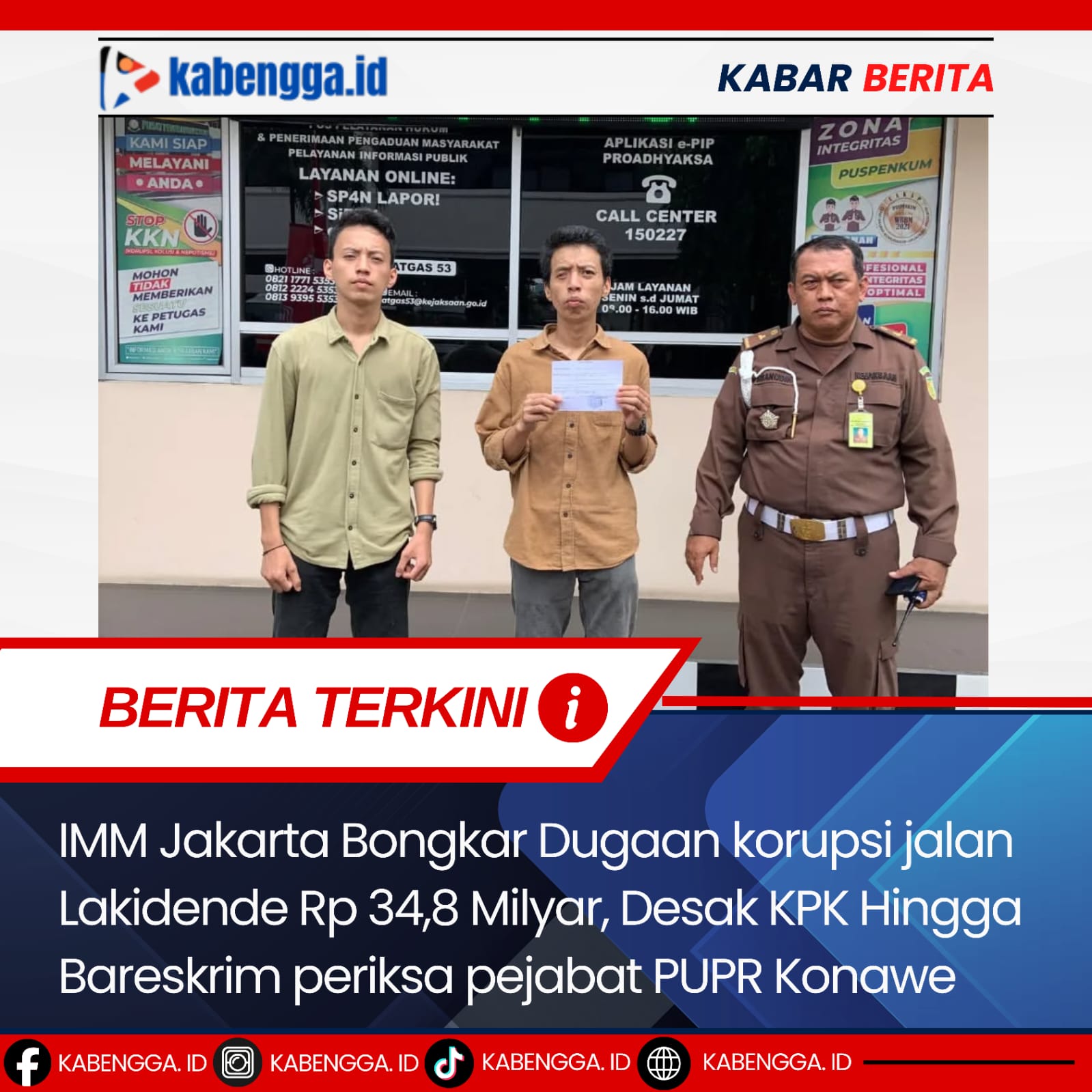 - Mendesak KPK, Kejaksaan Agung, dan Kepolisian RI untuk segera melakukan penyelidikan dan penyidikan menyeluruh terhadap seluruh tahapan Proyek Jalan Lakidende (2 Jalur), serta memanggil dan memeriksa Kuasa Pengguna Anggaran (KPA) dan Pejabat Pembuat Komitmen (PPK).