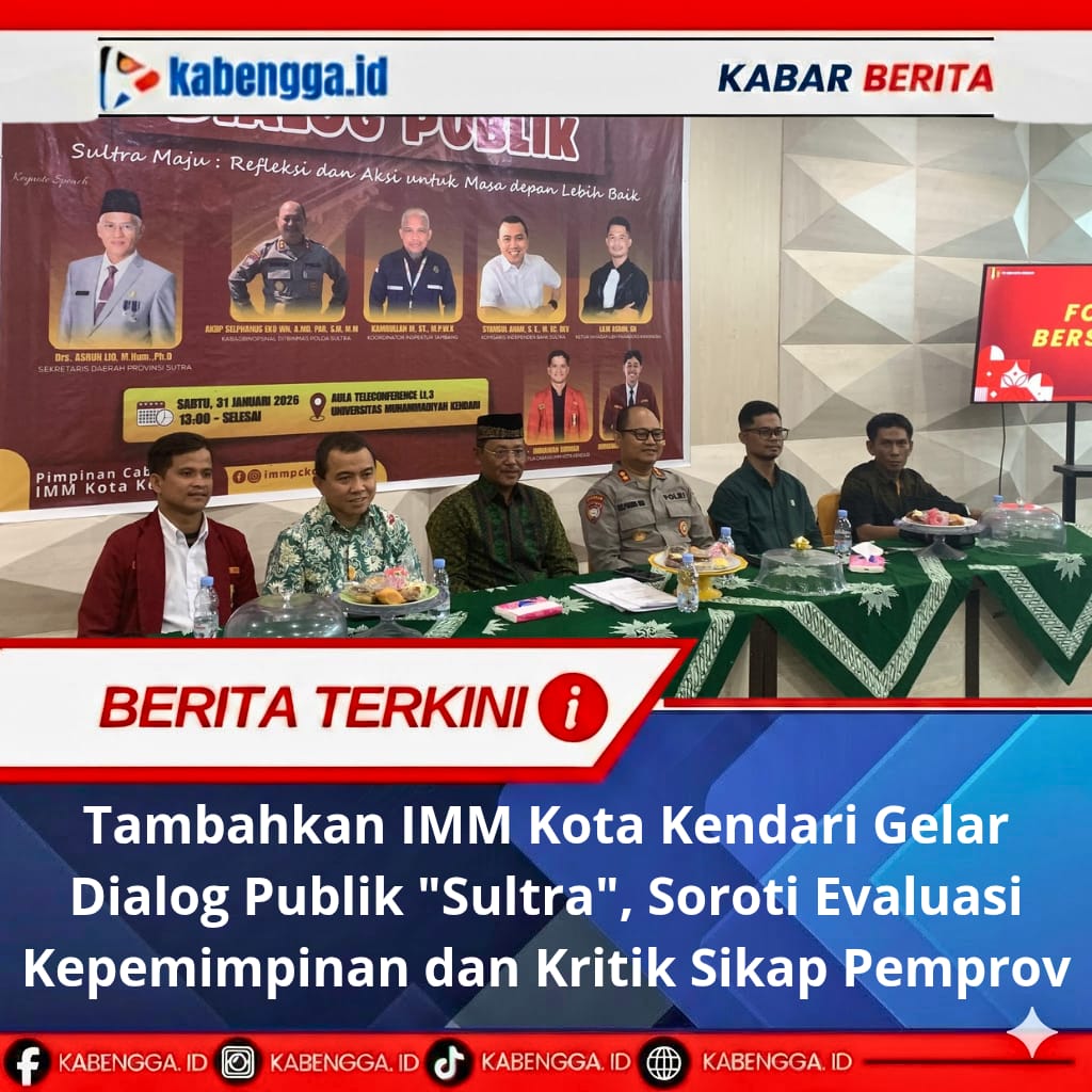 KENDARI — Pimpinan Cabang Ikatan Mahasiswa Muhammadiyah (PC IMM) Kota Kendari menggelar Dialog Publik bertajuk “Sultra Maju: Refleksi dan Aksi untuk Masa Depan Lebih Baik” di Aula Teleconference Lantai 3 Universitas Muhammadiyah (UM) Kendari, Sabtu, 31 Januari 2026.