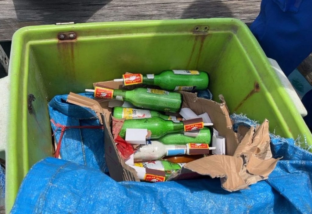 12 botol bom ikan (satu sudah sempat diledakkan),