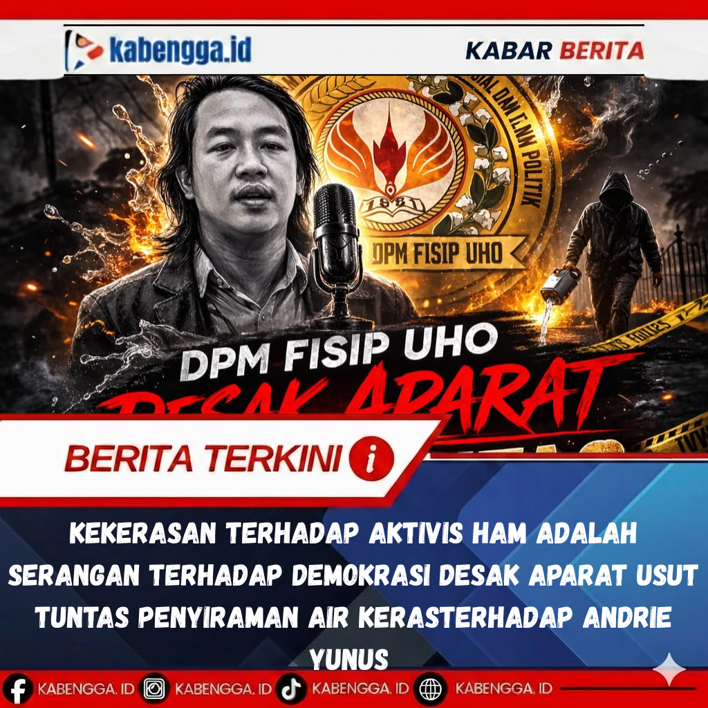 Kendari, 15 Maret 2026 – Dewan Perwakilan Mahasiswa (DPM) Fakultas Ilmu Sosial dan Ilmu Politik (FISIP) Universitas Halu Oleo (UHO) dengan tegas mengecam aksi kekerasan berupa penyiraman air keras yang dialami oleh Wakil Koordinator KontraS, Andrie Yunus. Peristiwa brutal yang terjadi pada Kamis malam, 12 Maret 2026, di Jakarta Pusat ini tidak hanya melukai fisik korban, tetapi juga melukai rasa keadilan dan kebebasan berpendapat di negeri ini.