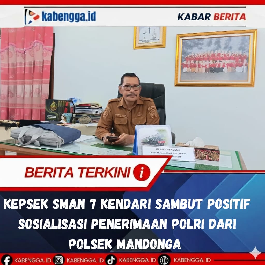 Kendari – Kepala Sekolah SMA Negeri 7 Kendari Laode Muhamad Sauf menyambut positif sosialisasi penerimaan polri yang dilaksanakan Polres Mandonga.