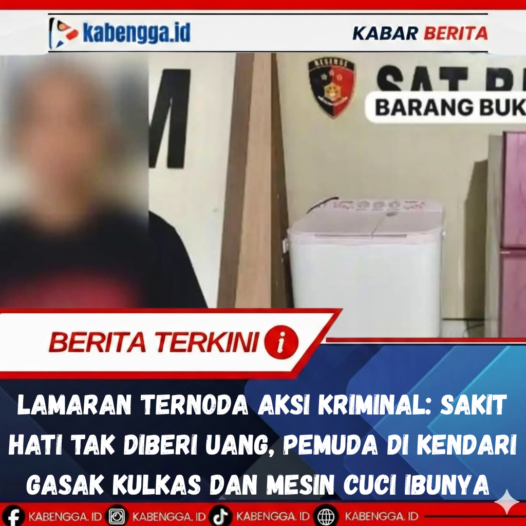Tim Buser77 Satuan Reserse Kriminal (Satreskrim) Kepolisian Resor Kota Kendari meringkus AS pada Kamis (26/2/2026), usai terbukti menggasak mesin cuci dan kulkas dari rumah orang tuanya.