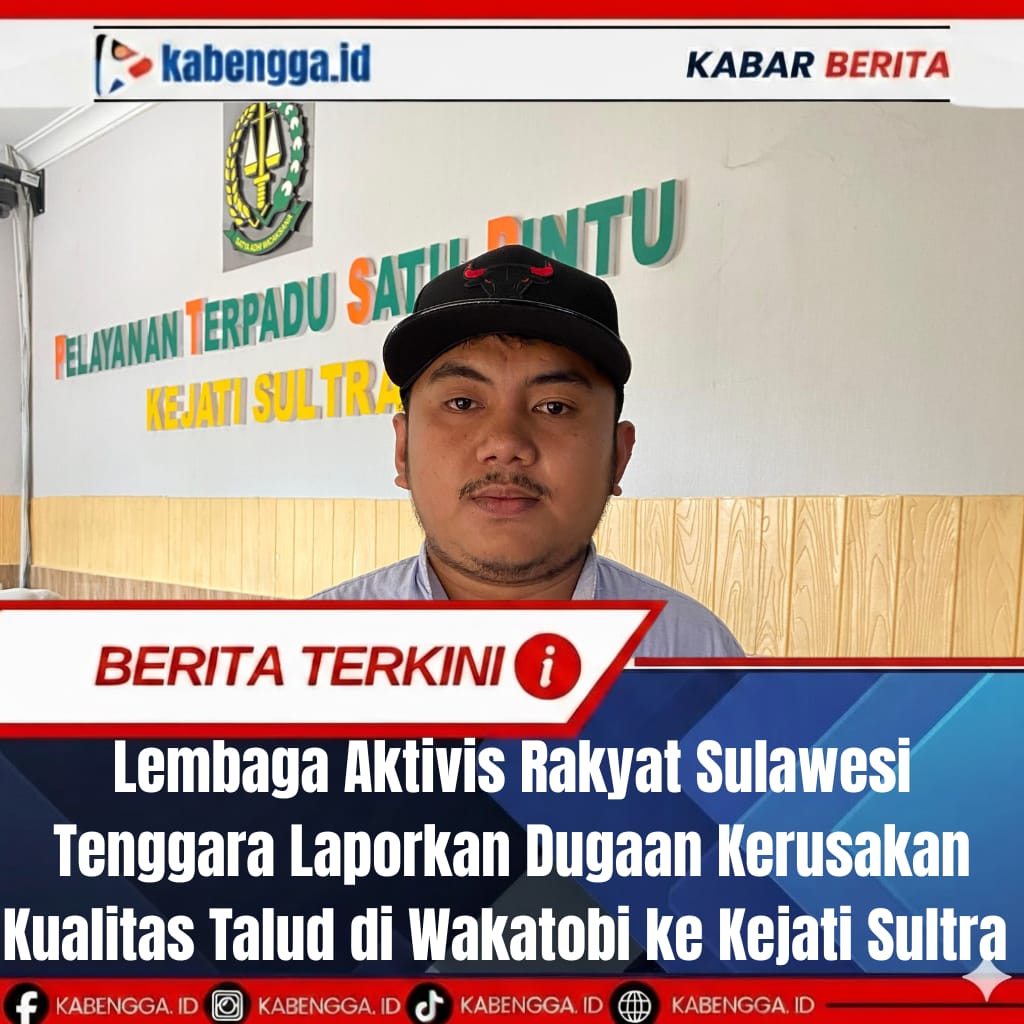 KENDARI ll KABENGGA.ID, ( 23 Februari 2026 ) – Lembaga Aktivis Rakyat Sulawesi Tenggara resmi melayangkan pengaduan kepada Kejaksaan Tinggi Sulawesi Tenggara terkait dugaan pelanggaran spesifikasi teknis dalam pekerjaan pembangunan talud pada ruas Jalan Ollo Selatan–Horuo/Horuo–Mantigola, Kabupaten Wakatobi.