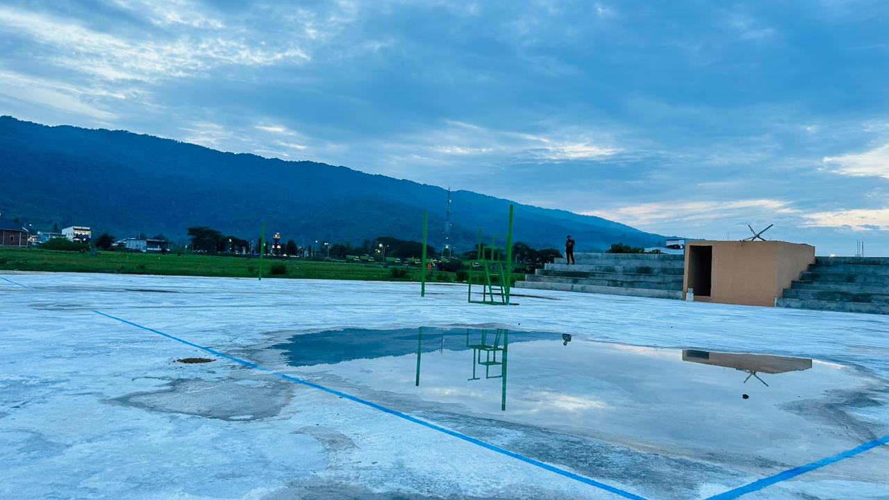 Berdasarkan dokumentasi lapangan yang dihimpun LIN, ditemukan retak-retak memanjang pada permukaan beton, pengelupasan dan keropos lapisan permukaan, serta genangan air di area lapangan. Kondisi tersebut mengindikasikan kegagalan kerataan, finishing, dan kualitas pelaksanaan pekerjaan. Kerusakan muncul tidak lama setelah pekerjaan dilakukan atau dinyatakan selesai, pada fase umur beton yang secara teknis seharusnya belum mengalami degradasi.