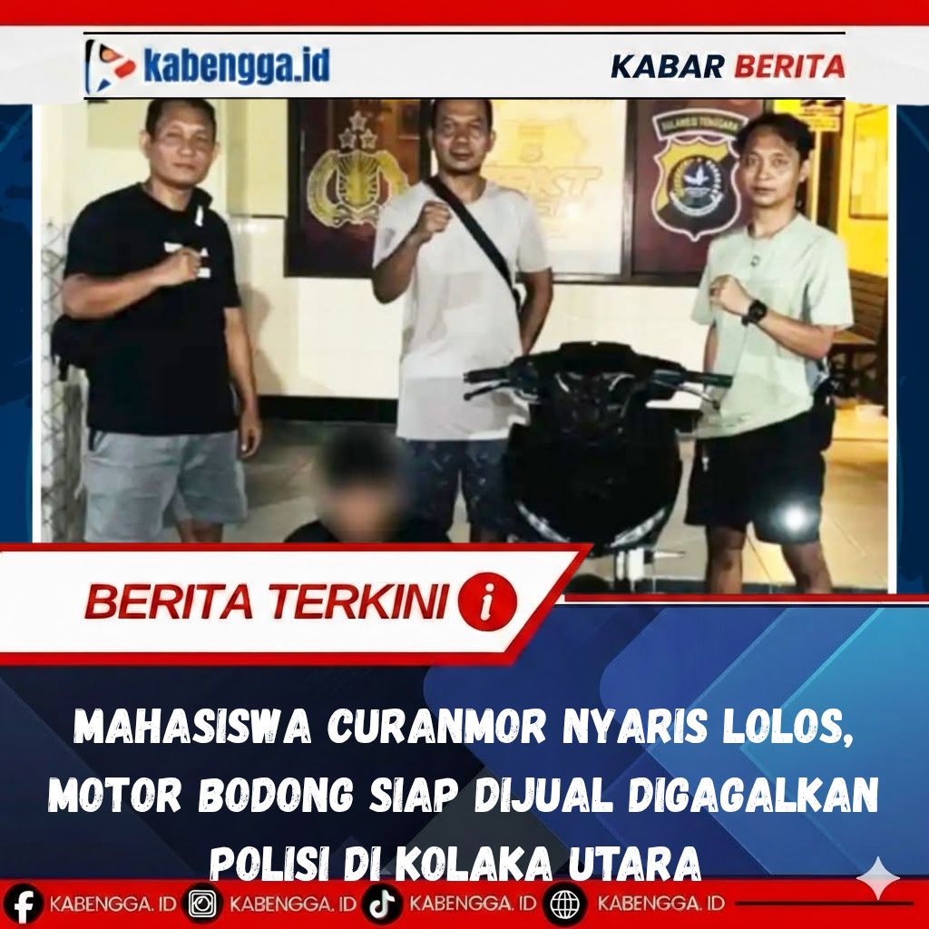 KOLAKA UTARA, KABENGGA.ID. – Aksi nekat seorang mahasiswa berujung di tangan aparat. Seorang pemuda berinisial PS (23) tak berkutik saat rencana penjualan sepeda motor bodong yang diduga hasil curian digagalkan personel Polsek Pakue.