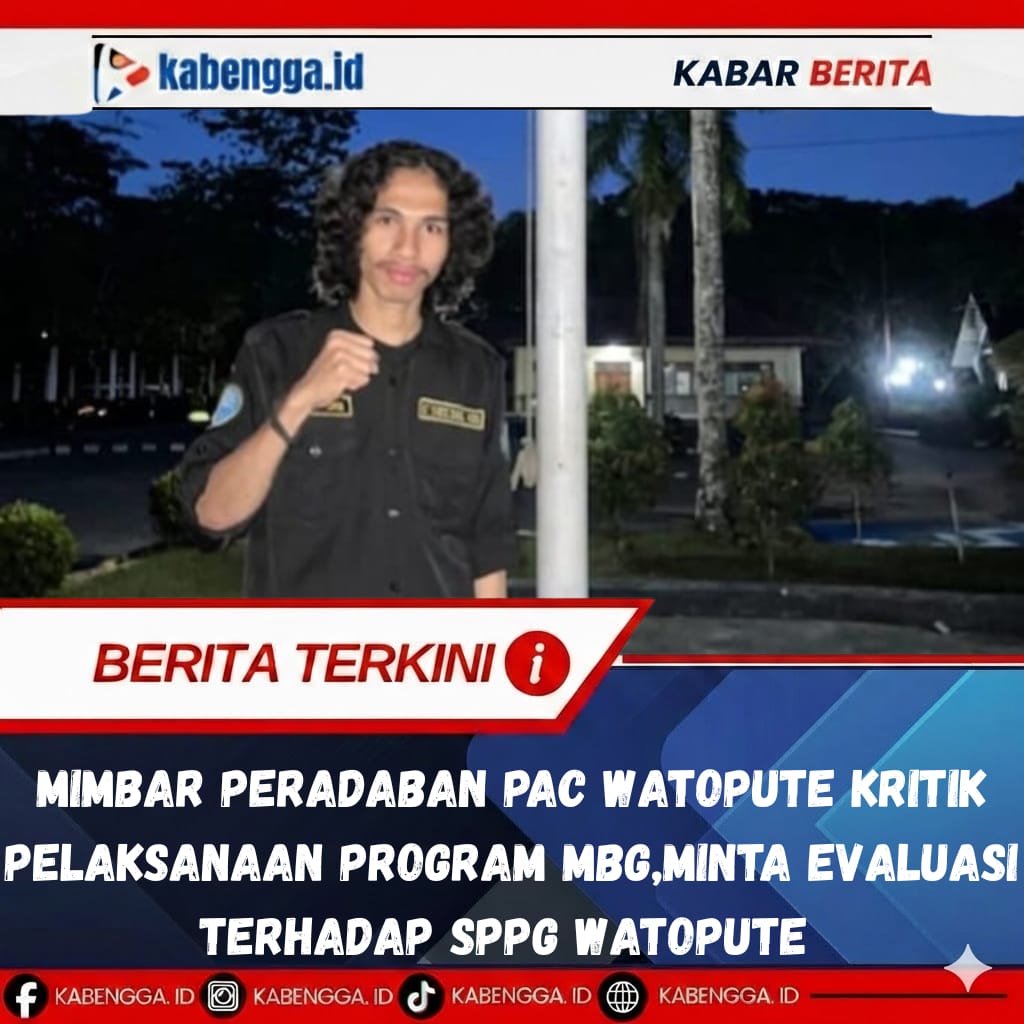 MUNA {18 Maret 2026 }– Kepala Bidang Hubungan Antar Lembaga Mimbar Peradaban PAC Watopute, Rahma Diansyah, menyampaikan keprihatinan terkait pelaksanaan Program Makan Bergizi Gratis (MBG) di wilayah Watopute yang dinilai belum sesuai prosedur.
