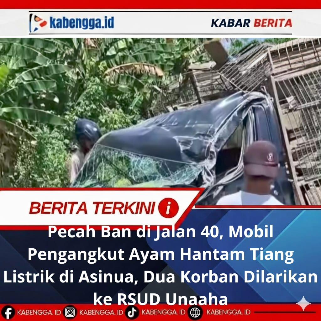 KONAWE – Kecelakaan tunggal kembali terjadi di wilayah Kecamatan Unaaha. Sebuah mobil pengangkut ayam bernomor polisi DT 8445 AA menabrak tiang listrik di Jalan 40, Kelurahan Asinua, Kecamatan Unaaha, Kabupaten Konawe, Minggu (15/2/2026) sekitar pukul 12.00 Wita.