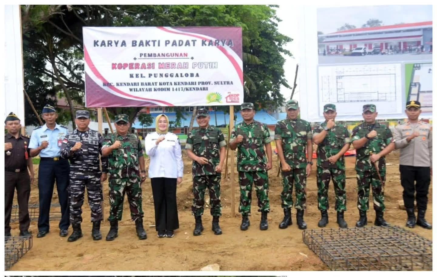 Kendari – Kabengga.id ll Pembangunan Gerai Koperasi Kelurahan Merah Putih (KKMP) di Kota Kendari resmi dimulai. Peletakan batu pertama dipimpin Pangdam XIV/Hasanuddin Mayjen TNI Bangun Nawoko bersama Wali Kota Kendari, dr. Hj. Siska Karina Imran, SKM., di kawasan Lapangan Benu-Benua, Kelurahan Punggaloba, Kendari Barat, Rabu (26/11/2025).