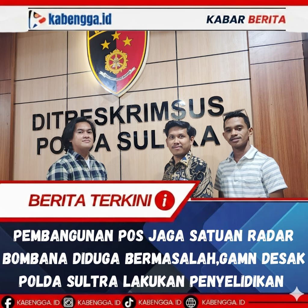 Atas dasar itu, GAMN mengaku telah melayangkan laporan pengaduan dugaan tindak pidana korupsi terkait pembangunan Kantor Pos Jaga Satuan Radar Bombana ke Direktorat Reserse Kriminal Khusus (Ditreskrimsus) Polda Sulawesi Tenggara.