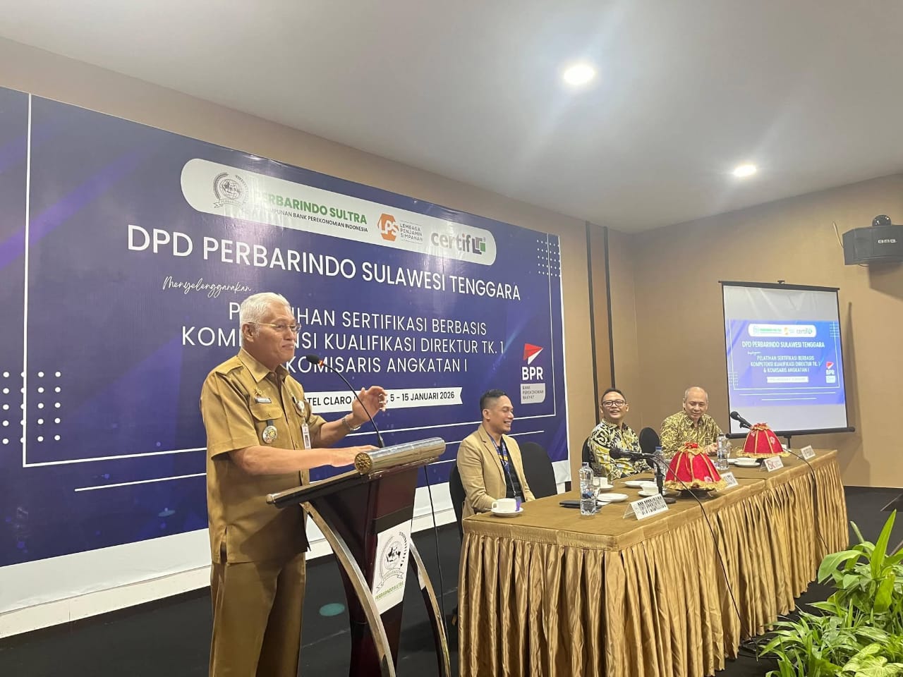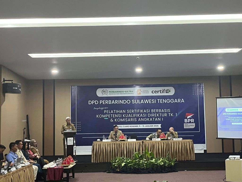 Hal itu disampaikan Sekretaris Daerah Provinsi Sulawesi Tenggara, Drs. H. Asrun Lio, M.Hum., Ph.D., saat membuka Pelatihan Sertifikasi Berbasis Kompetensi Kualifikasi Direktur Tingkat I dan Komisaris Angkatan I DPD Perbarindo Sultra di Kendari, Senin (6/1/2026).