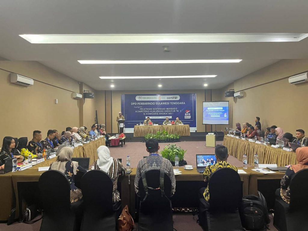 Acara ini turut dihadiri Kepala Perwakilan OJK Provinsi Sulawesi Tenggara, Bismi Maulana Nugraha; Ketua Bidang Pendidikan DPP Perbarindo, Zinsari; perwakilan Biro Ekonomi Setda Sultra; Ketua DPD Perbarindo Sulawesi Tenggara, Dr. Ahmat, SE., MM., beserta jajaran pengurus, para trainer, serta peserta pelatihan Direktur Tingkat I dan Komisaris BPR se-Sulawesi Tenggara.(redaksi).