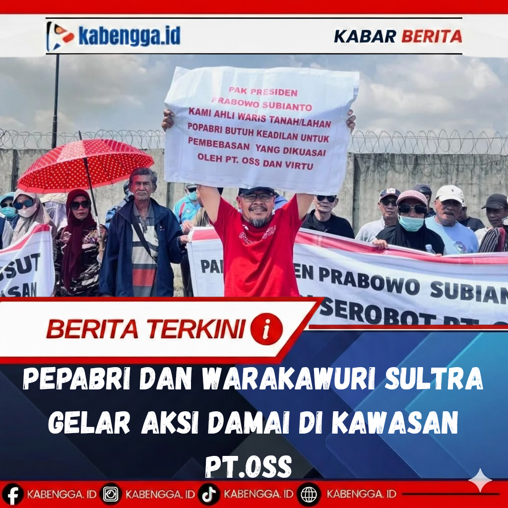Kendari – Sebanyak 162 orang ahli waris yang tergabung dalam Persatuan Purnawirawan Putra-Putri dan Warakawuri TNI-Polri (PEPABRI) Sulawesi Tenggara melakukan aksi damai di kawasan perusahaan pertambangan PT Obsidian Stainless Steel (OSS) Morosi Kabupaten Konawe, Sultra pada Minggu (19/04/2026) yang lahannya dikuasi perusahaan asing itu.