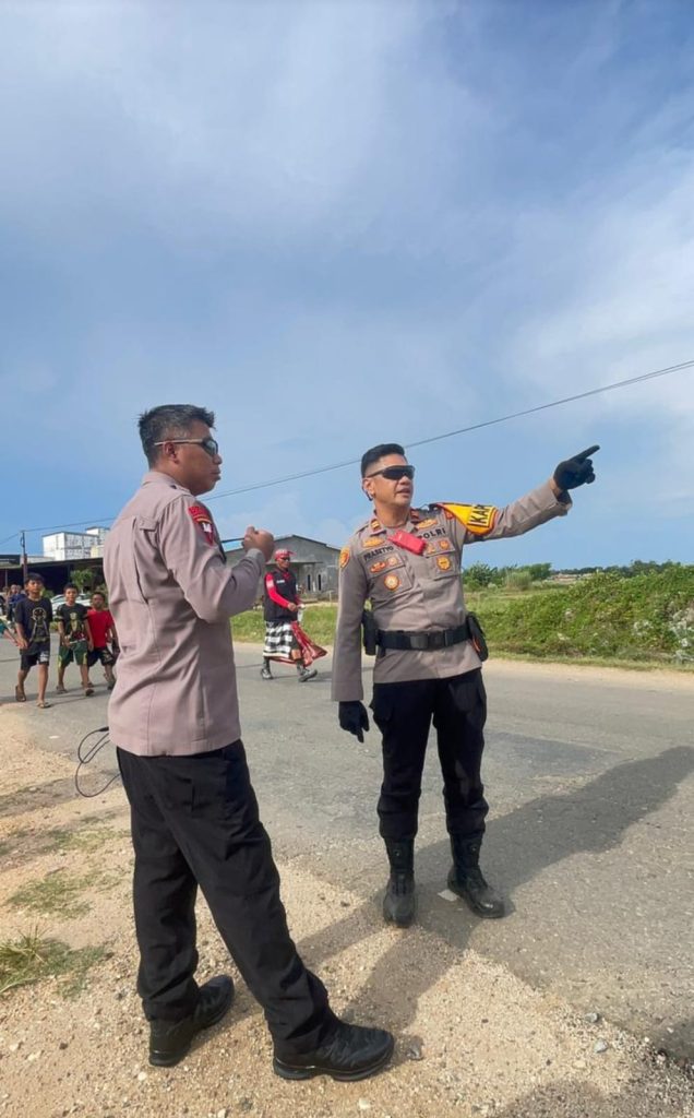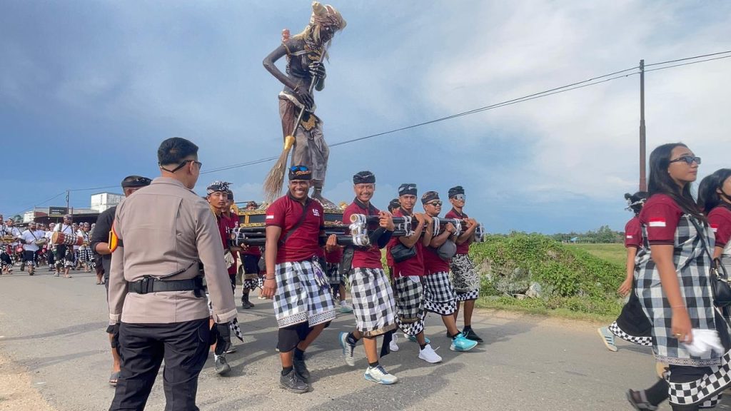 Bombana – Dalam rangka memberikan rasa aman dan nyaman kepada masyarakat, Polres Bombana melaksanakan pengamanan kegiatan Pawai Ogoh-Ogoh umat Hindu dalam rangka menyambut Hari Raya Nyepi Tahun Baru Saka 1948, yang berlangsung di Lapangan Jagadnata, Desa Kalaero, Kecamatan Lantari Jaya, Rabu (18/03/2026).