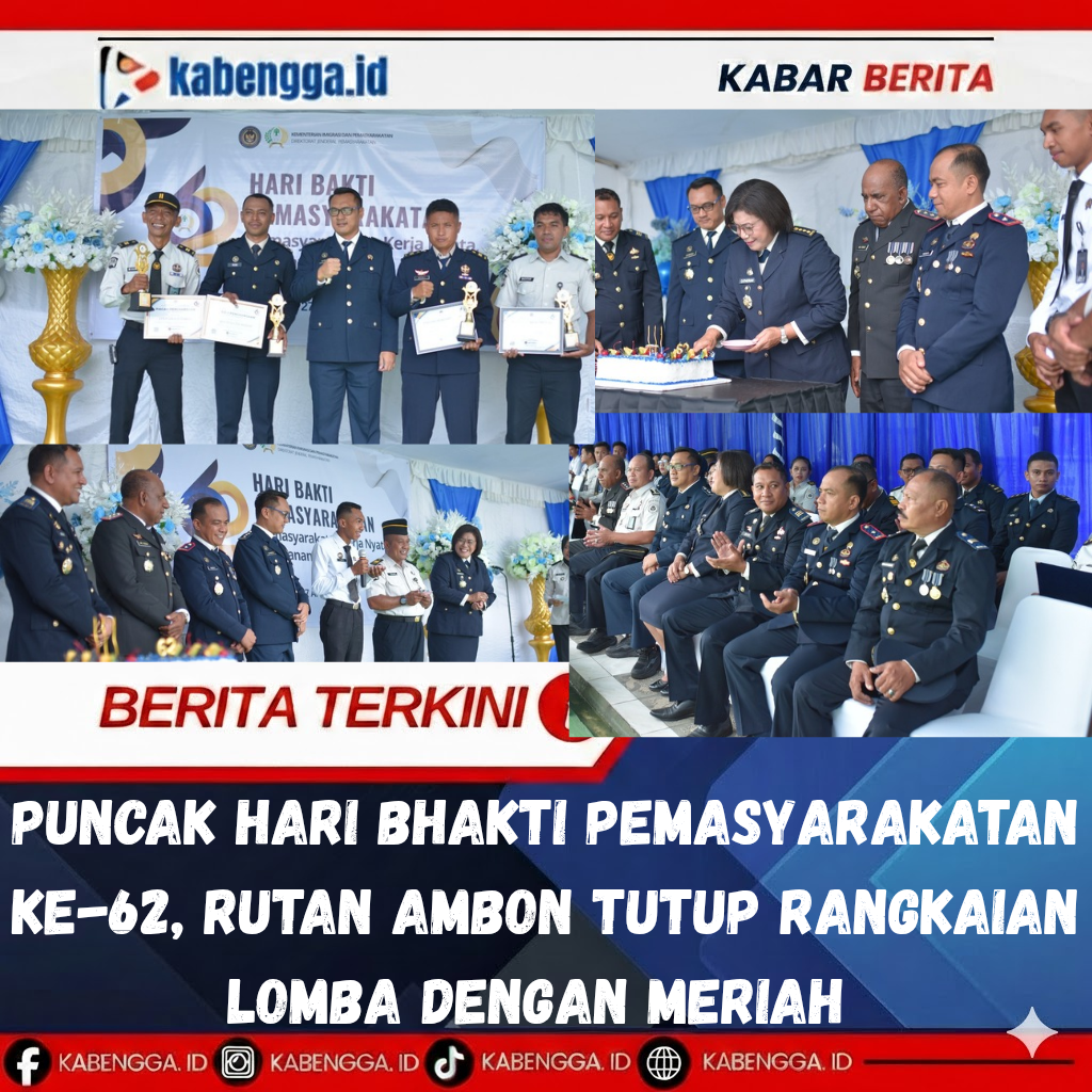 Ambon, Kabengga.Id. – Puncak peringatan Hari Bhakti Pemasyarakatan ke-62 di Rumah Tahanan Negara (Rutan) Kelas IIA Ambon, Senin (27/4/2026) berlangsung meriah dengan ditutupnya seluruh rangkaian perlombaan yang telah digelar selama beberapa hari terakhir.