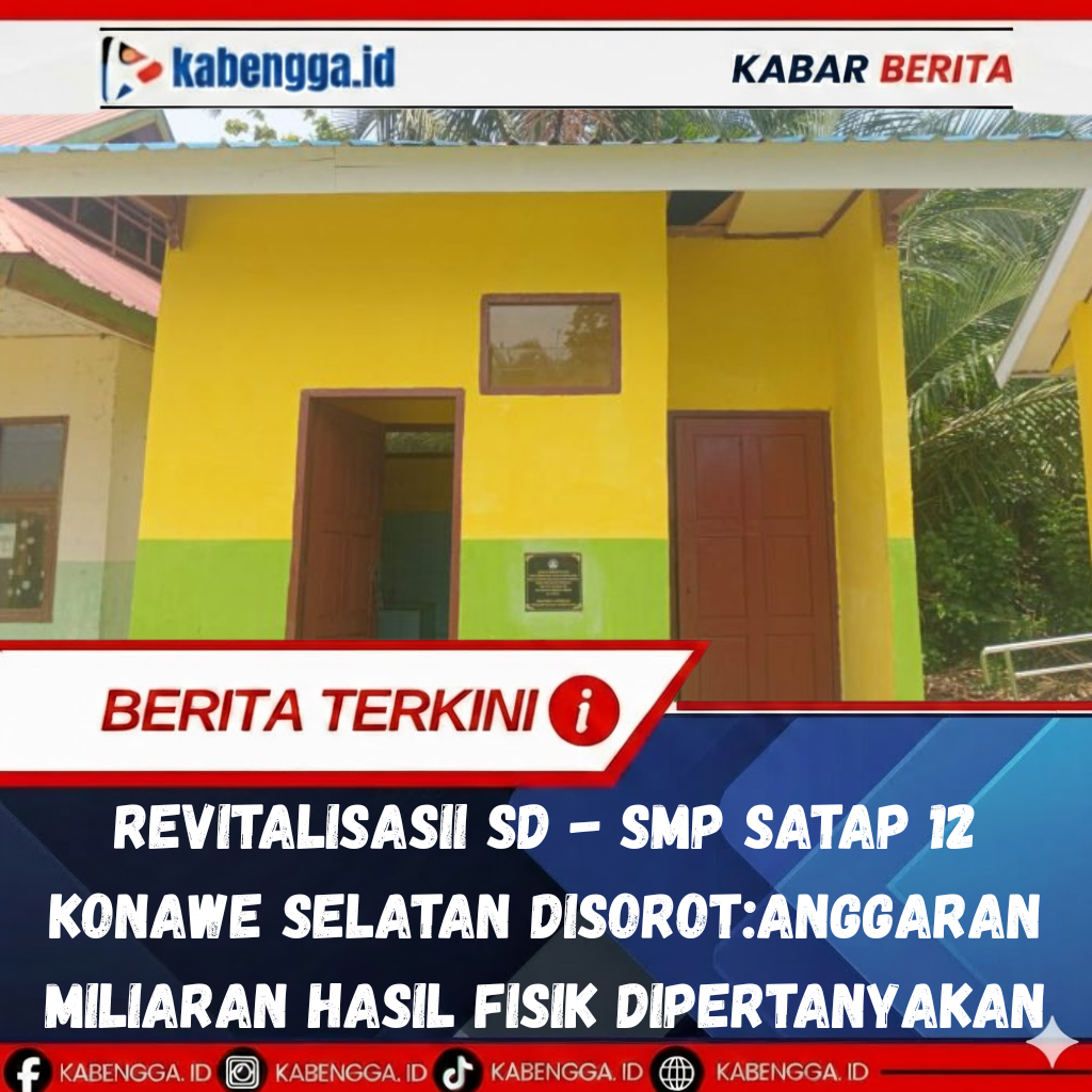 KONAWE SELATAN — Pelaksanaan Program Revitalisasi Satuan Pendidikan di SD–SMP Negeri Satu Atap (Satap) 12 Konawe Selatan, Desa Labuan Beropa, Kecamatan Laonti, menuai sorotan tajam. Proyek yang dibiayai melalui APBN Tahun 2025 itu diduga menyisakan tanda tanya besar antara besaran anggaran dan kondisi fisik bangunan di lapangan.