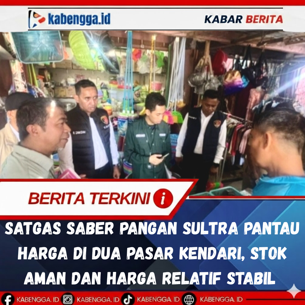 KENDARI – Tim Satuan Tugas (Satgas) Saber Pengendalian Harga Pangan Sulawesi Tenggara (Sultra) melakukan pemantauan intensif terhadap harga dan ketersediaan bahan pokok di sejumlah pasar tradisional di Kota Kendari, Senin (2/3/2026).