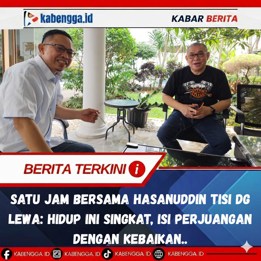 Jelang siang itu mengalir pelan. Ahad 19 April 2026. Di sebuah patio (rear terrace) area belakang rumah mewah di kawasan Bekasi Barat. Percakapan berlangsung tanpa sekat, tanpa formalitas berlebih. Di hadapan saya, duduk seorang figur yang dalam diamnya menyimpan keteguhan: Hasanuddin Tisi Dg Lewa— akrab disapa Tetta Lewa, Pengusaha sukses asal Sabintang, Takalar, Sulawesi Selatan, yang kini menetap di Perumahan Pondok Timur Mas, Bekasi Barat.