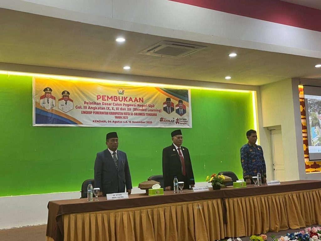 Kendari — Kabengga.id ll Sekretaris Daerah Provinsi Sulawesi Tenggara, Drs. H. Asrun Lio, M.Hum., Ph.D, secara resmi membuka Pelatihan Dasar (Latsar) Calon Pegawai Negeri Sipil (CPNS) Golongan III Gelombang III Angkatan IX, X, XI, dan XII Tahun 2025, pada Senin (10/11/2025) di Kendari. Kegiatan ini diikuti oleh peserta dari berbagai kabupaten dan kota se-Sulawesi Tenggara.