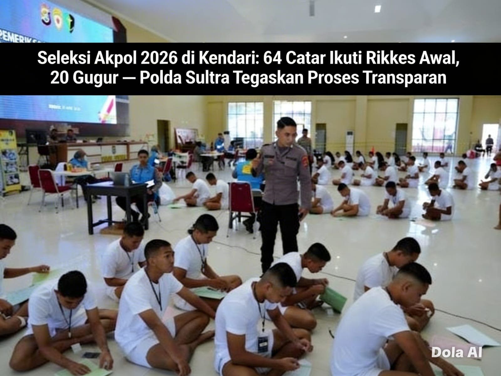 KENDARI, KABENGGA.ID — Proses seleksi calon taruna dan taruni Akademi Kepolisian (Akpol) tahun 2026 di Kota Kendari mulai memasuki fase krusial. Sebanyak 64 peserta mengikuti pemeriksaan kesehatan (rikkes) tahap pertama yang digelar di Aula Dharana Lastarya Polda Sulawesi Tenggara, Selasa (7/4).