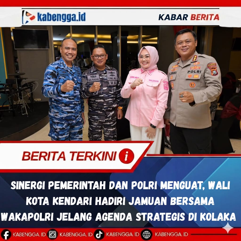 KENDARI, KABENGGA.ID. – Wali Kota Kendari, dr. Hj. Siska Karina Imran, SKM, menghadiri jamuan makan malam bersama Wakil Kepala Kepolisian Republik Indonesia (Wakapolri), Komjen Pol Dedi Prasetyo, pada Senin malam (20/4/2026). Kegiatan yang diinisiasi oleh Polda Sulawesi Tenggara ini menjadi bagian dari rangkaian penyambutan kunjungan kerja Wakapolri di wilayah tersebut.