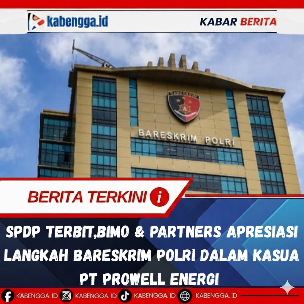JAKARTA ,KABENGGA.ID — Tim kuasa hukum dari Kantor Hukum Bimo & Partners menyampaikan apresiasi kepada aparat penegak hukum, khususnya penyidik Direktorat Tindak Pidana Ekonomi dan Khusus (Dittipideksus) Bareskrim Polri, atas profesionalisme dalam menangani perkara dugaan tindak pidana yang berkaitan dengan PT Prowell Energi Indonesia.