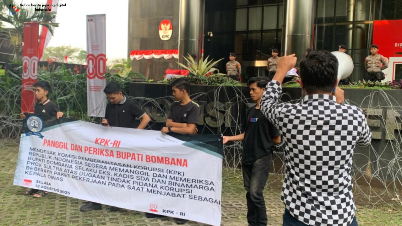 Jakarta — Lembaga Pemantau Penegakan Hukum (LPPH) Sulawesi Tenggara kembali mendatangi Gedung Komisi Pemberantasan Korupsi (KPK) RI, Senin (1/9/2025). Ini adalah kali ketiga massa aksi menggeruduk KPK untuk menuntut pemeriksaan terhadap Bupati Bombana, BRHD, terkait dugaan kasus korupsi.