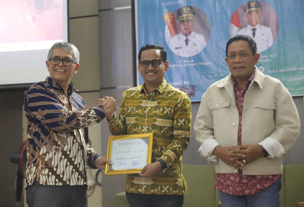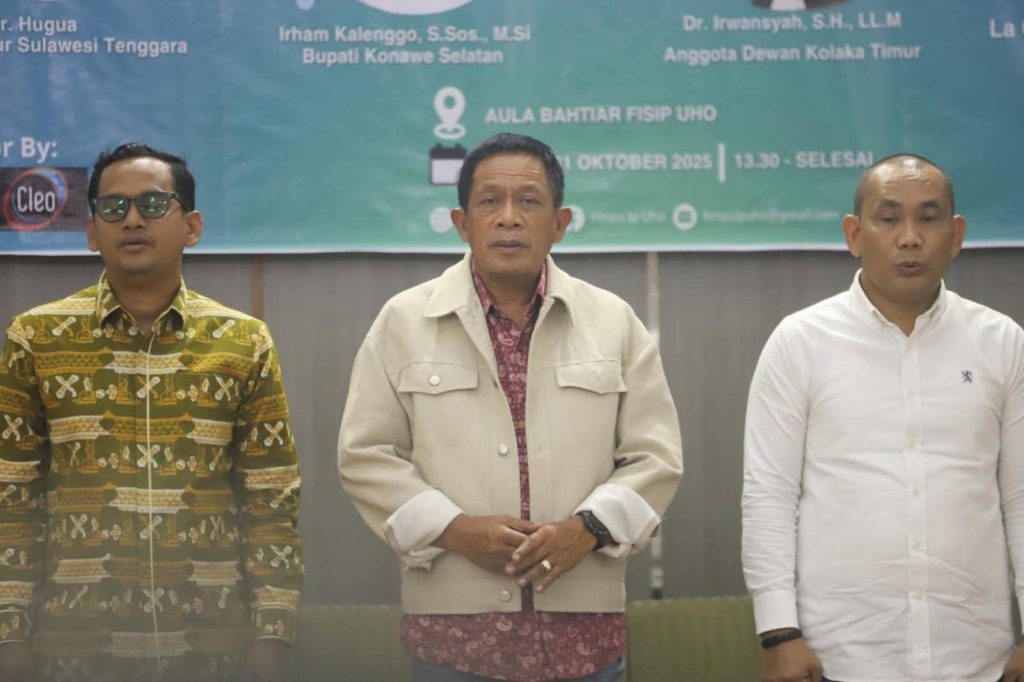 Kendari – Kabengga.id ll Wakil Gubernur Sulawesi Tenggara, Ir. Hugua, M.Ling, tampil sebagai narasumber utama dalam Seminar bertema “Ruang Partisipasi Pemuda dalam Kebijakan Publik” yang digelar oleh Himpunan Mahasiswa Program Studi Ilmu Politik FISIP Universitas Halu Oleo (UHO) di Aula Bahtiar, Jumat (31/10/2025). Kegiatan ini dihadiri ratusan mahasiswa lintas jurusan, dosen, dan pimpinan fakultas, serta menghadirkan sejumlah anggota DPRD dari Kolaka Timur dan Konawe Selatan sebagai pembicara pendamping.